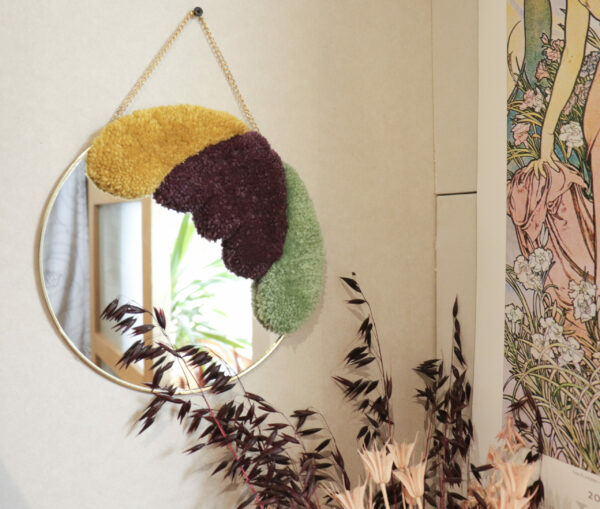 Mirror with hand tufted rug