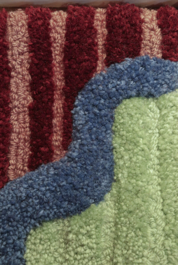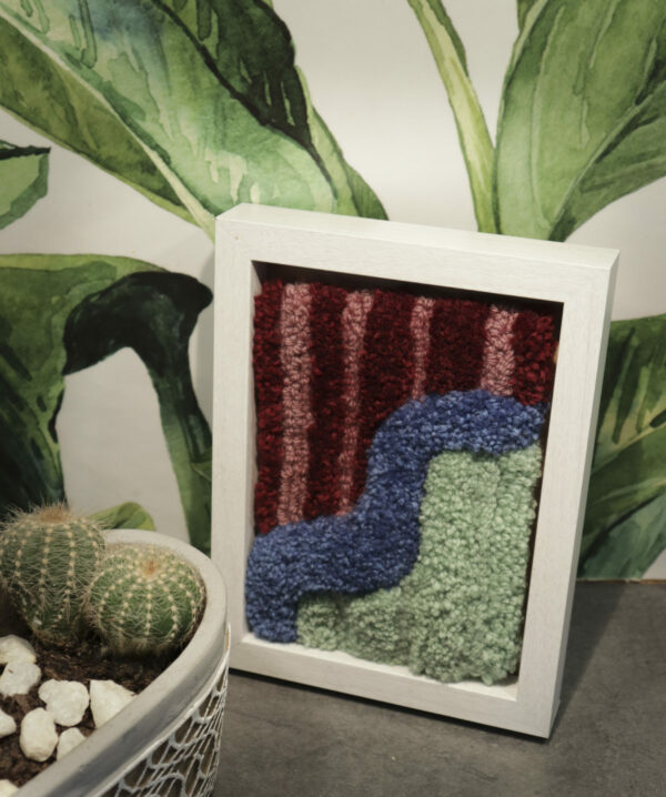 Wooden picture frame with hand tufted mini rug